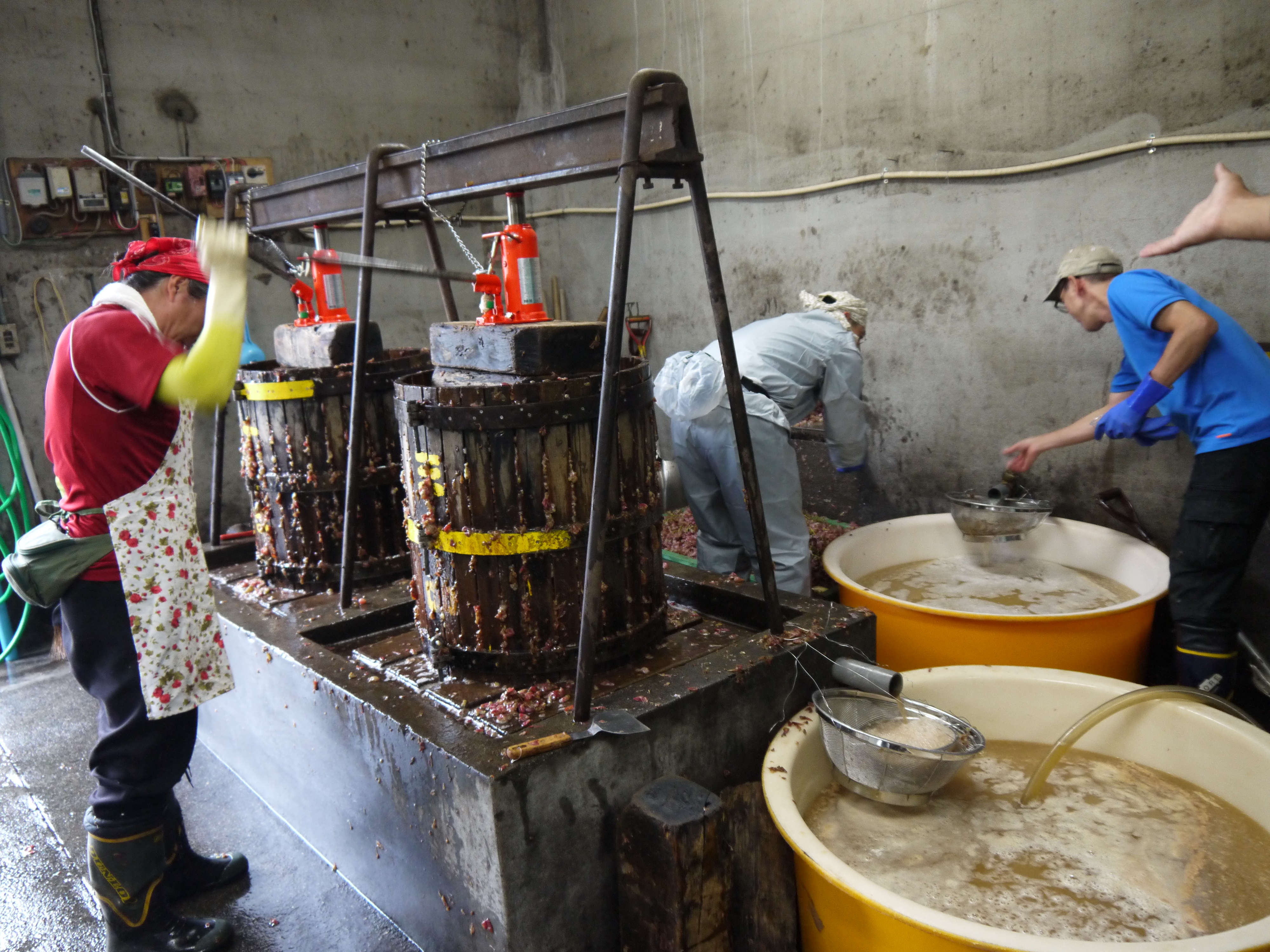その後、一年に4日?しかないというワインの仕込みを見学させてもらった~